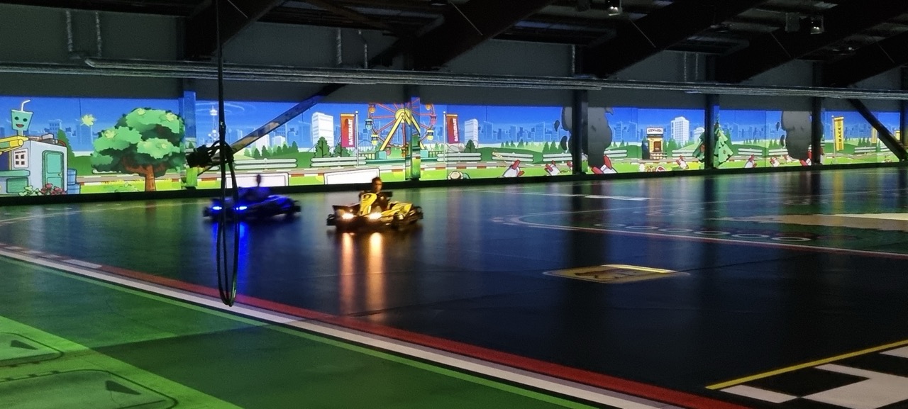 Von 13:00 bis 15:30 Uhr nutzten wir die verschiedenen Spielmodi und hatten durchgängig viel Spaß. Wir traten in drei Teams gegeneinander an und fuhren unterschiedliche Modi, darunter die klassische Mario-Kart-Strecke im Real-Life-Stil, Snake und Fußball. Zusätzlich kamen verschiedene Extra-Items wie Booster oder ein Ölfass zum Einsatz, was die Rennen noch spaßiger und spannender machte.